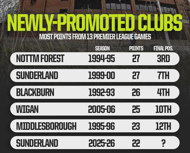 從統(tǒng)計數(shù)據(jù)可以看到,桑德蘭是最近20年來在英超成績最好的升班馬球隊。上一支如此驚艷的升班馬,還是2005-06賽季的維甘競技。
